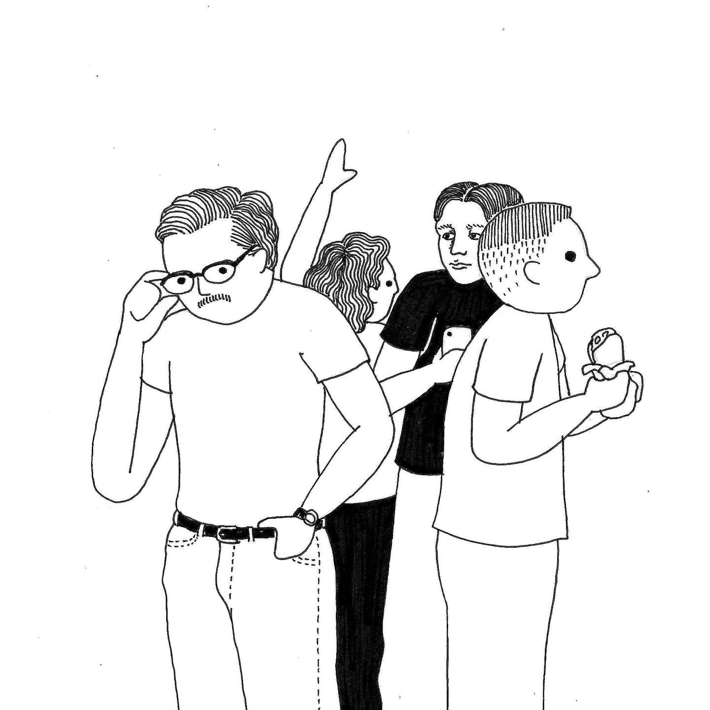 人を描くときには、どれだけフラットにするのかを考えています。顔の表情を描いてしまうと、感情や印象を決めつけてしまう気がします。表情がないことによって、絵を自由に捉えられたり、人によってさまざまな捉え方ができるようになります。 表情を描かなくても、服装やポージングで人の個性は十分表現できると思いますし、個性を無くしていった結果、この表情になりました。