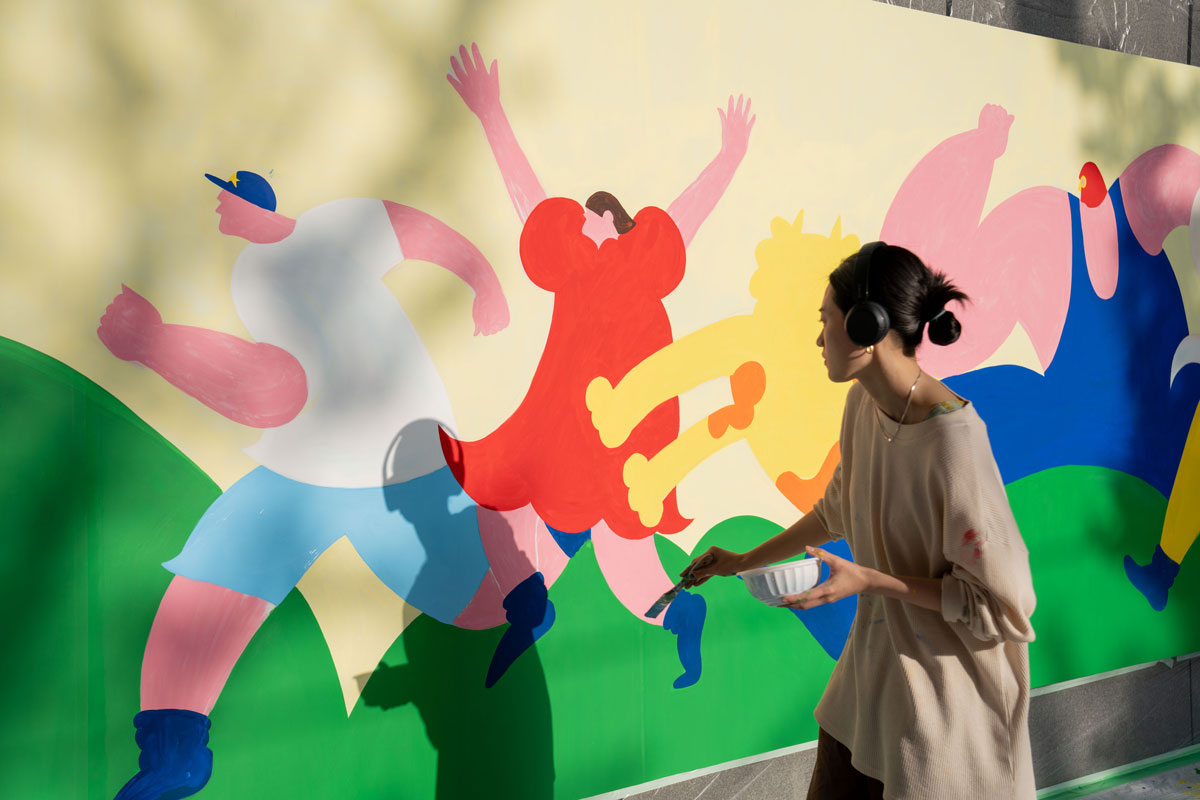 YANGYANGさんの作品は構成が近いですが、描き方が全然違うので、その対比を見てもらえればと。人によって見え方・感じ方が違うと思うので、今回一緒にできて良かったです。 壁画に憧れはあったんですが、色々と制限があり、自分のやりたいことがどこまで叶うかなという思いがありました。ただ今回制作してみて、道ゆく人が制作する様子を見て、同じ空気を共有して、空間を共にできたのは良い経験になりました。あと数回はチャレンジしてみたいですね。笑