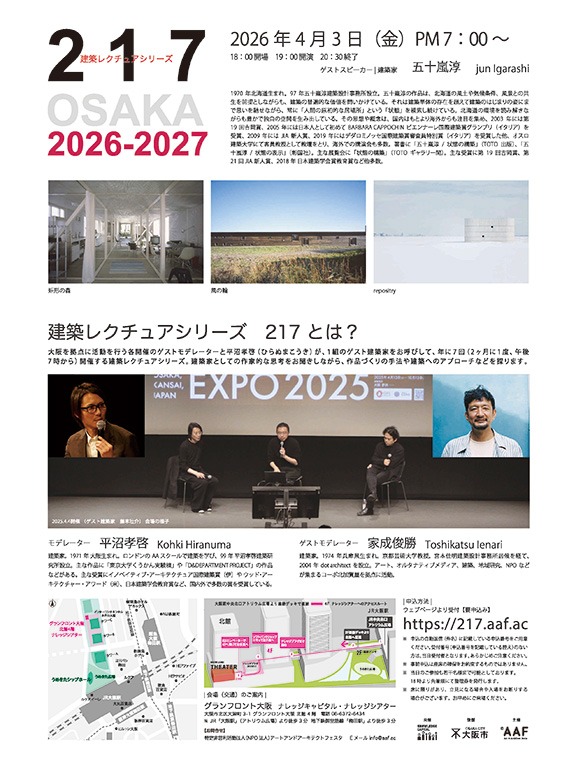各開催のモデレーターを務められる建築家の方々と平沼孝啓氏が1組のゲスト建築家をお呼びして、年に7回(2ヶ月に1度、午後7時から)開催する建築レクチュアシリーズ。