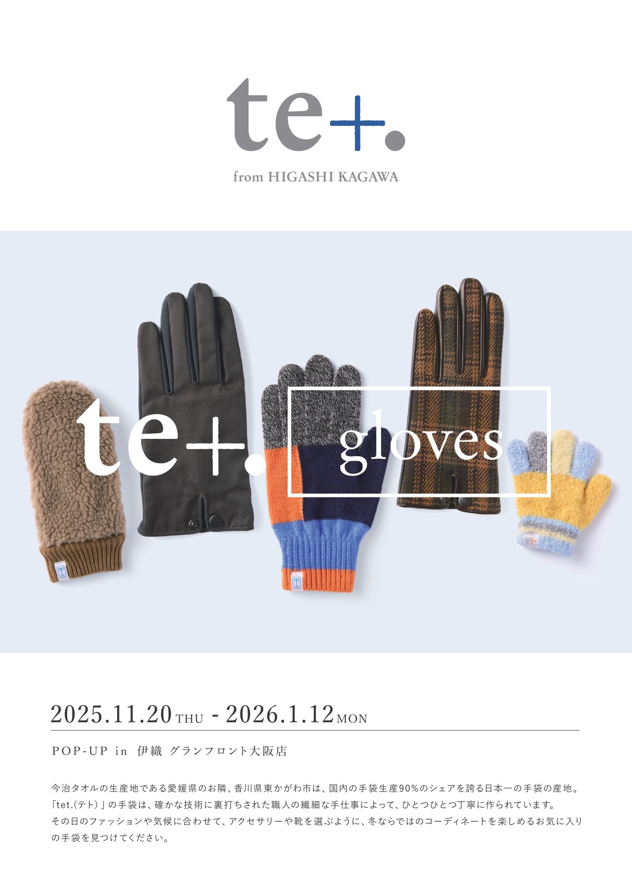 <tet. POP-UP>手袋の産地ならではの彩り豊かで上質な手袋をお届け