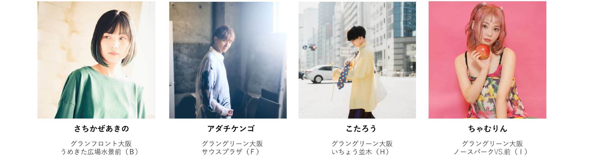 当日は4組のミュージックバスカーがグランフロント大阪・グラングリーン大阪各所でストリートライブを実施し、イベントを一緒に盛り上げます!ミュージックバスカーたちの演奏もぜひお楽しみください!